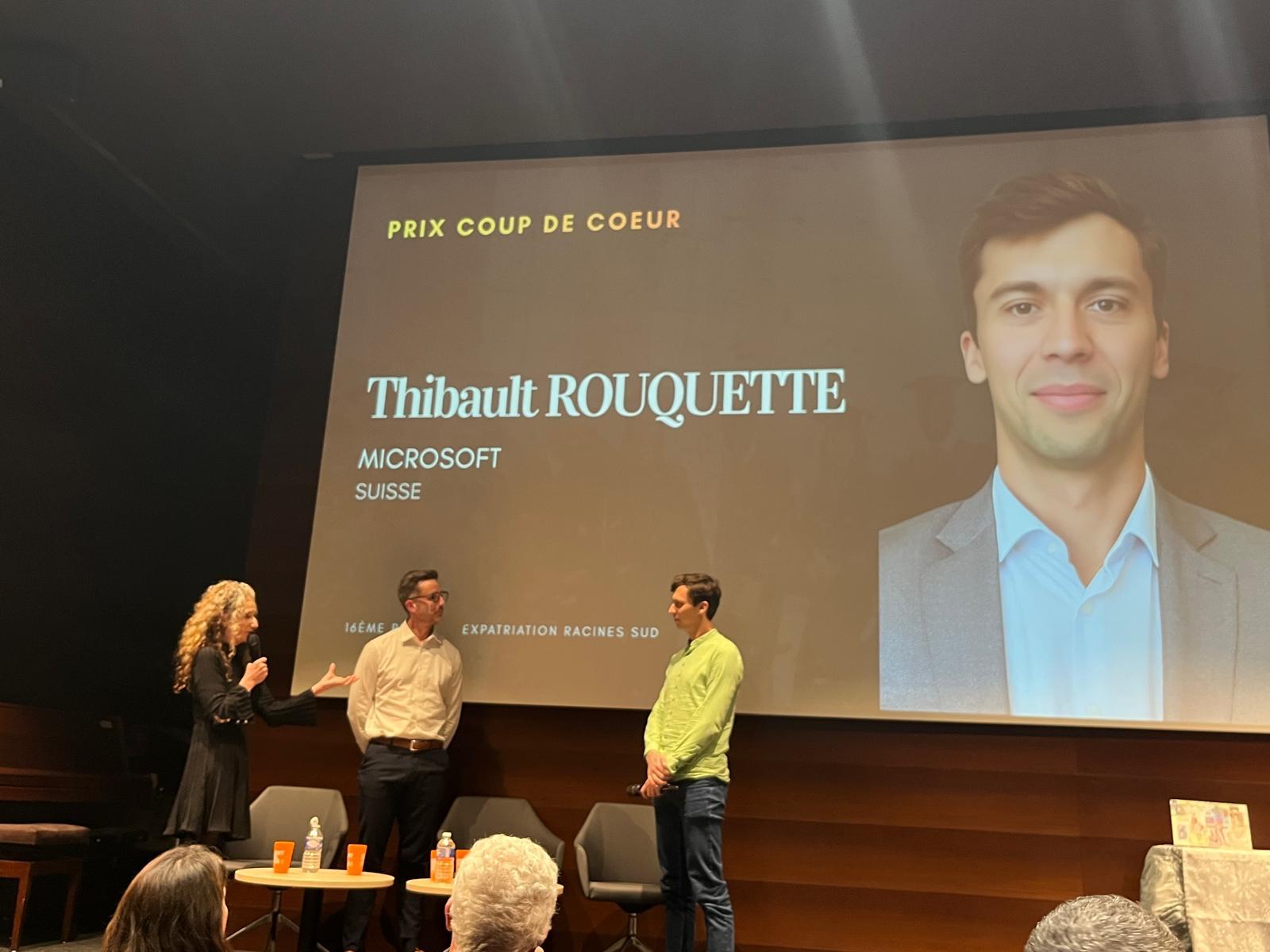 • Prix du Jury - Thibaut Rouquette, dont le parcours est centré autour de l'innovation. Après être passé par La Grande-Bretagne et la Pologne, il est aujourd’hui en poste chez Microsoft à Zurich. Il a reçu le Prix du Jury pour la qualité et l’impact de sa trajectoire professionnelle.
